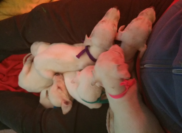 Am Sonntag hat Carmen bei allen Welpen die Krallen geschnitten und jeweils gleich noch ein neues Foto gemacht, da sie in der Zwischenzeit bereits schon wieder ein Stück gewachsen sind. Ich habe so gut es geht dabei geholfen. Alle Nevada-Babys und ich waren nach getaner Arbeit ziemlich erschöpft. Aber keine Zeit auszuruhen, denn mein Wecker klingelte und ich wusste es ist Zeit in die „Waschküche" zu gehen, denn die Wäsche war fertig und die Maschine war bereit für die nächste Runde.
