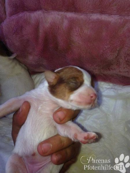 Daisy wurde am 6.1.2015 in einem Karton beim TA im Abfallcontainer gefunden. Roman und Carmen überlegten nicht lange und nahmen die Welpen mit ins Refugio um sie aufzupäppeln. Die kleine Maus ist total verschmust und geniesst ihre Kuschelstunden mit dem Team. Die kleine Daisy spürt jetzt schon, dass sie mit ihrem Charme die Menschen um den Finger wickeln kann. Sie wird sich sicher prächtig entwickeln und den neuen Besitzern eine riesen Freude bescheren.