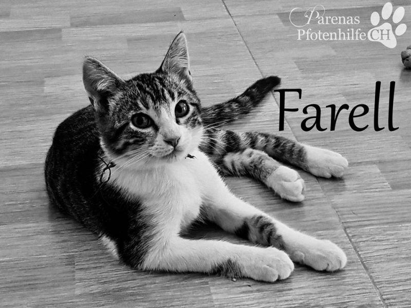 Farell ist ganz typisch für junge Kätzchen verspielt, fröhlich und mag Menschen. Auch Schmusestunden ist er nicht abgeneigt.