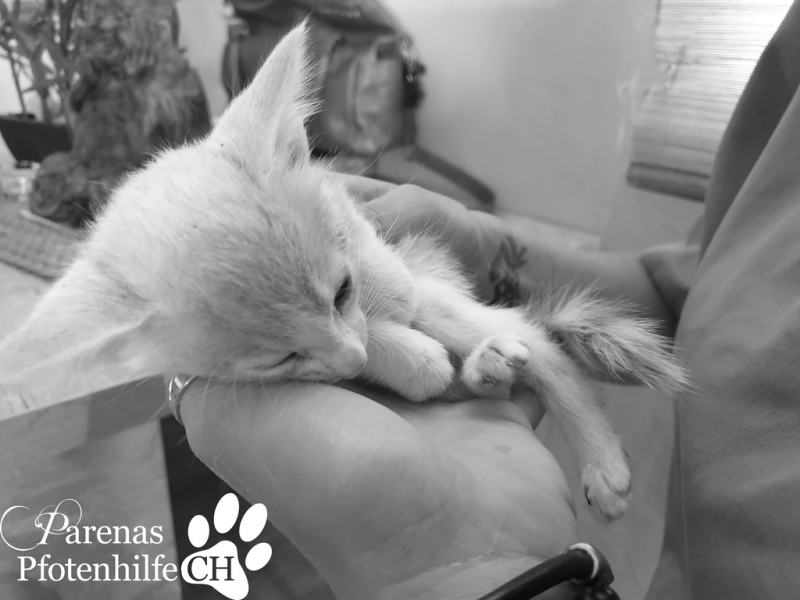 Virginia brachte die kleine geschwächte Katzenseele ins Haus, um auch ihm die Flasche zu geben, damit er schnellst möglich zu Kräften kommt. ❤️