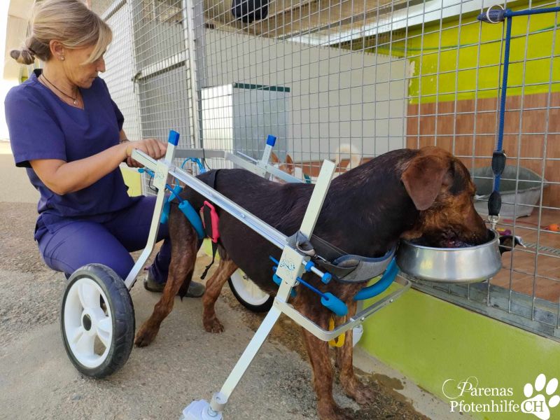 Dieses Fahrgestell wird sicher zusätzlich zu ❤️ Carlitos ❤️ Genesung beisteuern und bald flitzt unser Junge nur noch über das Refugiogelände.