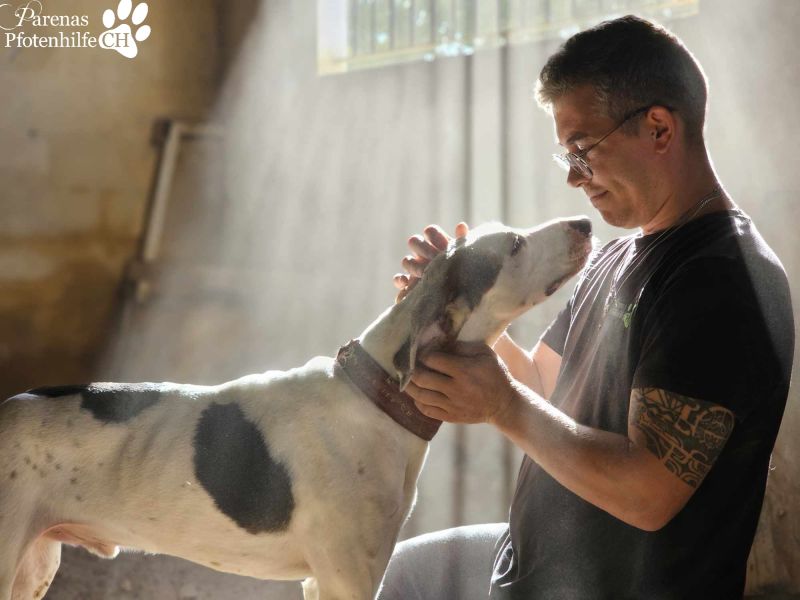 Das hat ❤️ Soto ❤️ schon sehr schnell erkannt. Er wurde mit anderen total vernachlässigten und abgemagerten 'Jagd - Sportgeräten' gerettet und so aus einer Situation befreit, in der er keinerlei Rechte hatte, sondern nur die Pflicht, auf Abruf zu funktionieren ... Viele Baustellen kamen zum Vorschein, entsetzte Augen bei jeder Berührung, Das Hände auch gut tun konnten, war unvorstellbar!