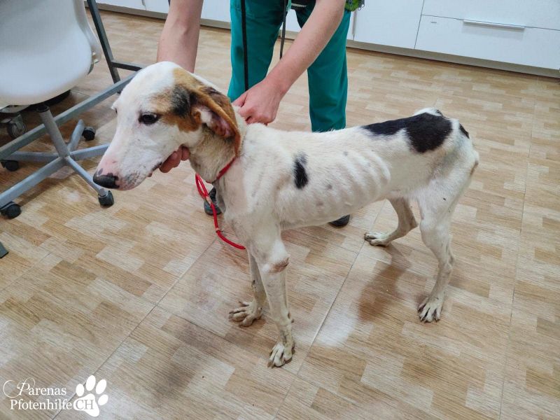 Die HOFFNUNG hatte unser armer abgemagerter Engel ❤ Soto ❤ schon lange aufgegeben. DER leere Blick...DER Körper geprägt vom Hunger.