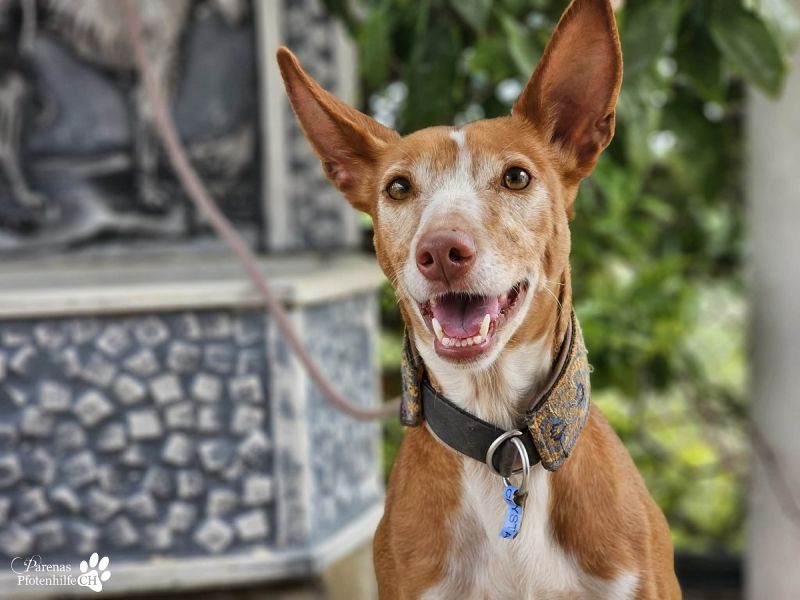 Ich bin eine sanfte, verschmuste Podenca und liebe die Nähe zu Menschen. Anfangs kann ich etwas schüchtern und zurückhaltend sein, aber wenn ich Vertrauen fasse, öffne ich mich schnell. Dann werde ich zutraulich, anhänglich und genieße jede Streicheleinheit.