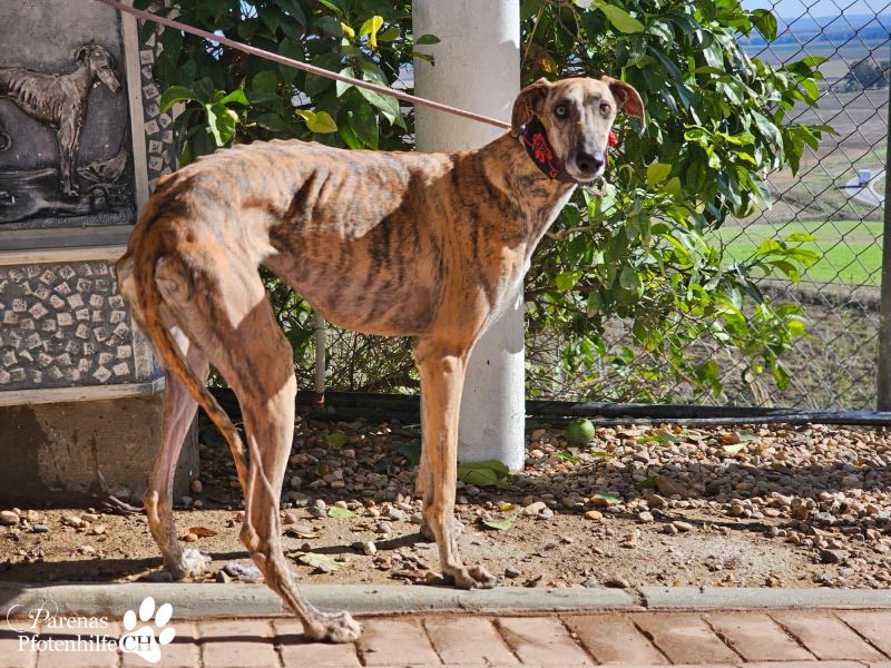 Karo ist eine junge Galga mit einem feinen Gespür für ihre Umgebung. Eigentlich findet sie Menschen großartig, doch ihre Schüchternheit steht ihr dabei noch häufig im Weg. Mit Geduld, liebevoller Begleitung und ein paar leckeren Belohnungen fasst sie jedoch immer mehr Vertrauen. Hat sie diese erste Hürde überwunden, genießt sie Nähe, Spiel und Zuwendung in vollen Zügen. Dann fragt man sich wirklich, wo die schüchterne Hündin eigentlich geblieben ist, und kann mit ihr nach Herzenslust kuscheln. Nach dem Motto „Warum streiten, wenn man auch freundlich wedeln kann?“ umgeht Karo Konflikte elegant und kommt mit anderen Hunden sehr gut zurecht. Ihre ruhige Art, gepaart mit Neugier und Intelligenz, macht sie zu einer angenehmen Begleiterin, die aufmerksam beobachtet und stetig dazulernt.