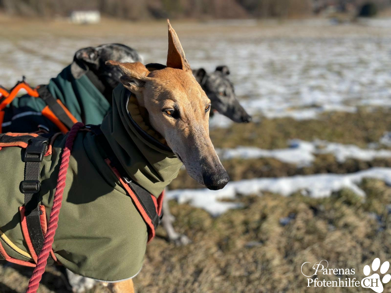 Unser Spanier, welcher eigentlich eher die wärmeren Temperaturen gewohnt ist, findet es super, sogar im Schnee herumzuflitzen. Der Garten wird mittlerweile sehr gut angenommen und er beginnt mit seinen neuen Freundinnen zu spielen und zu rennen. Seht selbst, wie er draussen Gas gibt.