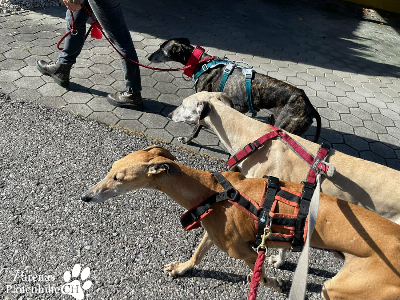 Bei Unsicherheit sucht der Bub die Nähe seiner Bezugsperson. Am liebsten verkriecht er sich dann zwischen oder hinter den Beinen. Im Gasthaus zeigte Nando sich als gemütlicher Begleiter und entspannte sich gleich auf dem ihm zugewiesenen Platz. Jagdtrieb ist vorhanden und vor allem hörbar, der süße Bub fängt dann nämlich an zu jammern!