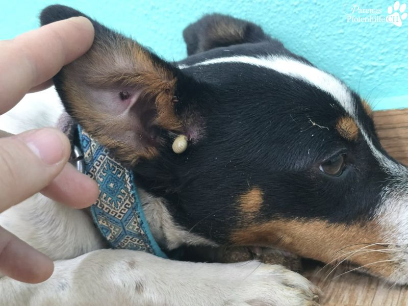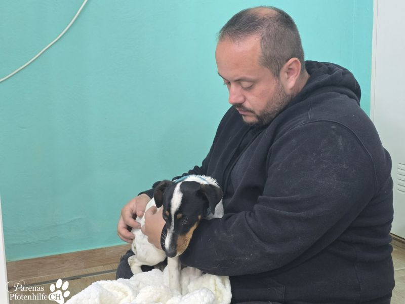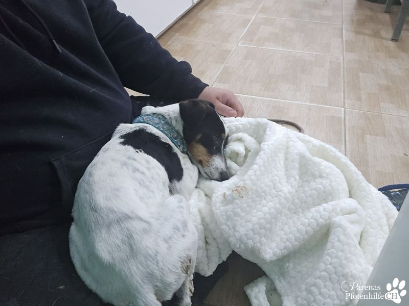 Da ❤️Cindy❤️ sich im Spital leider die Wunde aufgerissen hat, trägt sie jetzt ein T-Shirt zum Schutz der Narbe. Ganz spontan hat Carmen dafür das Shirt verwendet, das sie damals als Spaß für den FC Parenas bekommen hat. Cindy scheint das überhaupt nicht zu stören – im Gegenteil: Sie genießt die Nähe und kuschelt entspannt mit dem Team.