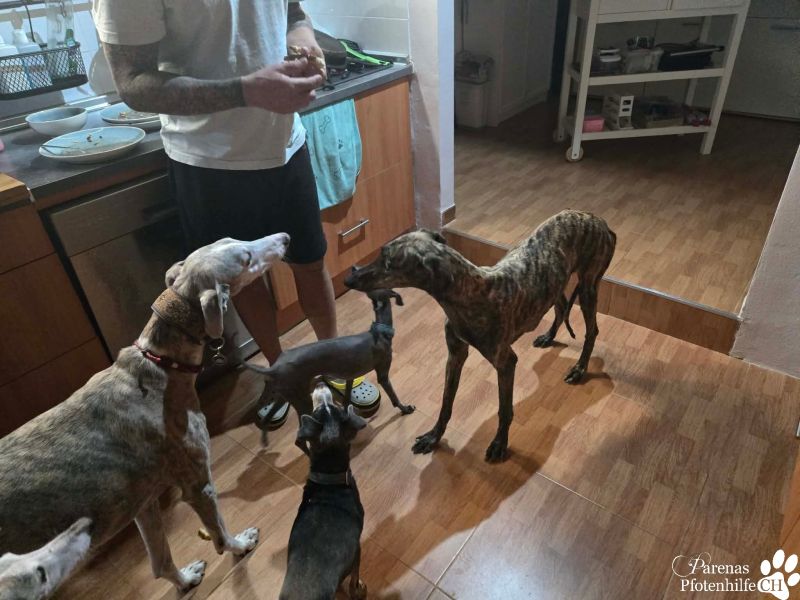 Hier klärt uns Carmen auf, dass beide in der Zwickmühle sind. Carmen möchte gerne die schwarze Galga adoptieren die seit 2 Jahren bei Sportdog in der Beschlagnahmung ist und Manu ist am liebäugeln mit Osuna. Da scheint es gegenseitige Liebe zu sein.