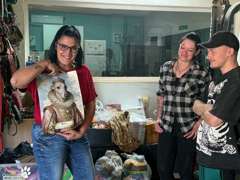 Doch zwischen all den nützlichen Dingen kam ein Geschenk zum Vorschein, das für einen Moment den Atem anhalten ließ. Es ist ein Bild von Hada – Carmens Seelenhündin, die sie vor einiger Zeit verlassen musste.