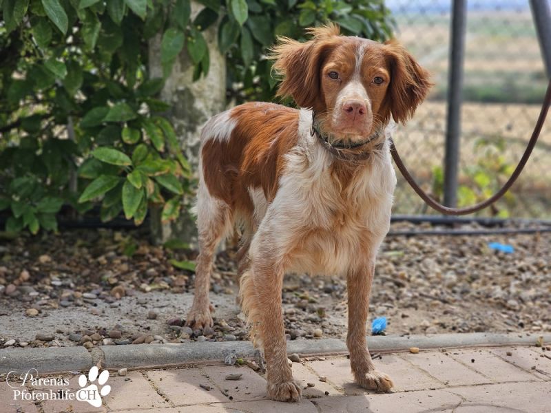 Cristobal ist ein junger Breton Rüde mit einem ganz besonderen Wesen. Sportlich und intelligent, ist Cristobal der ideale Begleiter für aktive Menschen, die ihm sowohl körperliche als auch geistige Auslastung bieten möchten. In der Hundegruppe zeigt er sich gern als Leader, Menschen gegenüber ist er jedoch zunächst schüchtern und vorsichtig. Vor allem bei schnellen Bewegungen oder in ungewohnten Situationen kann er erschrecken und zuckt zusammen. Doch mit Geduld, Ruhe und Einfühlungsvermögen taut Cristobal auf und zeigt seine zutrauliche, liebevolle Seite. Wer ihm Zeit gibt, wird mit einem treuen und freundlichen Begleiter belohnt.