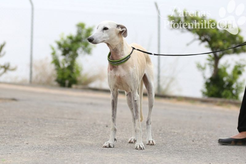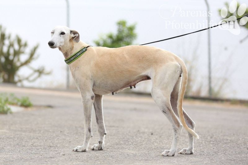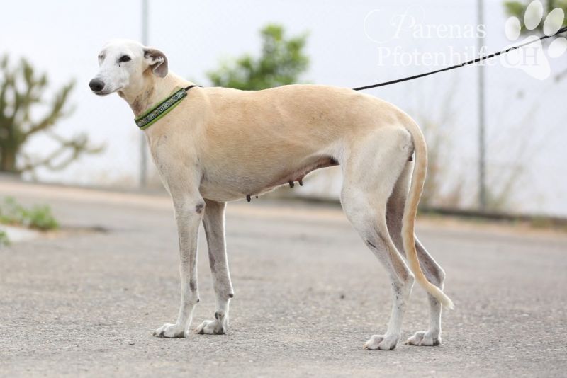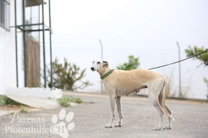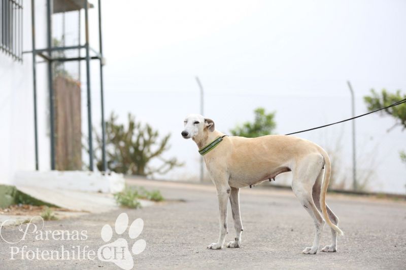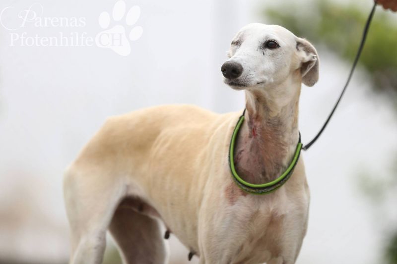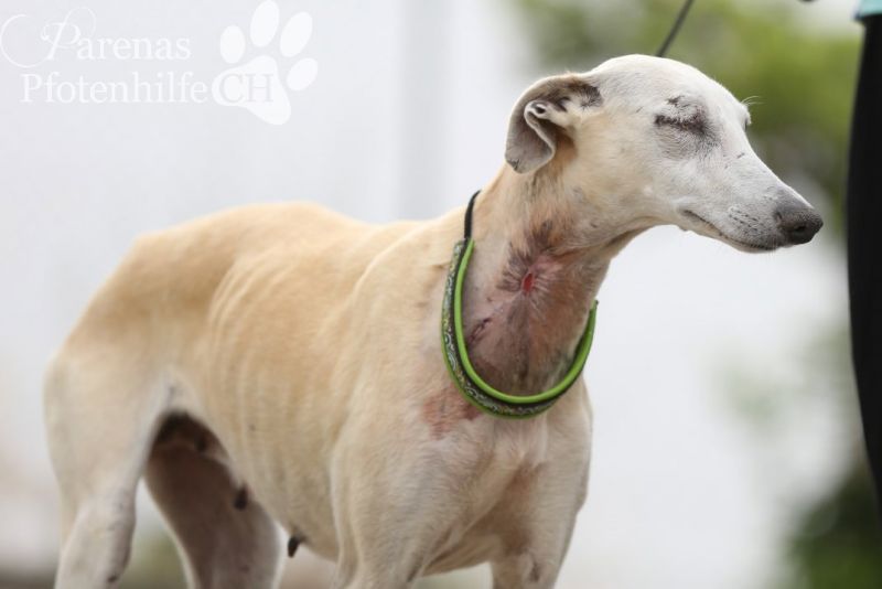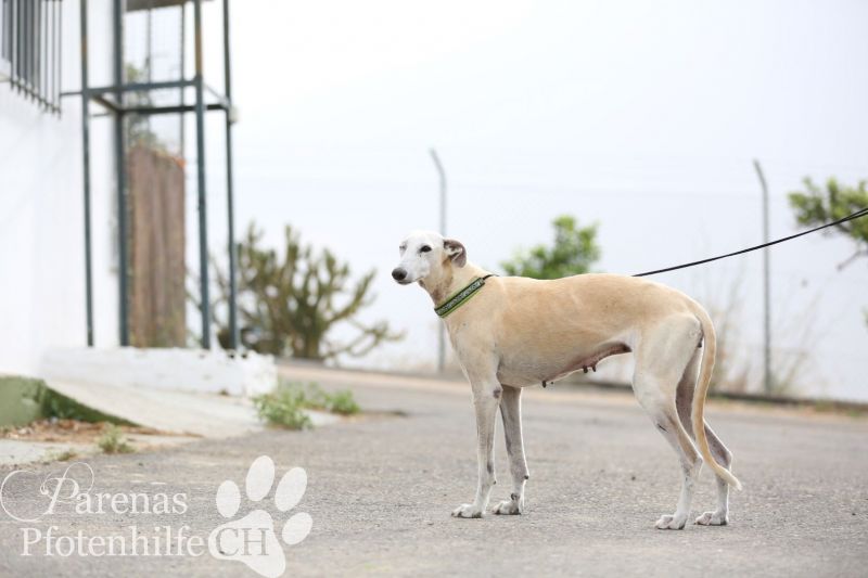 Carmen hat von einem jungen Burschen, der auch Galguero ist, am 12.05.2016, einen Anruf erhalten, dass er eine Galga gesichtet hat, die in einem schlimmen Zustand ist. Sie sei sehr, sehr dünn und sie solle bitte kommen. Als Carmen vor Ort war, ist aus allen Wolken gefallen! Sie ist so unglaublich dünn, und hat eine Geschwullst am Hals! Was ist nur mit dir geschehen? Wie lange irrst du wundervoller Engel schon ohne Hilfe herum?