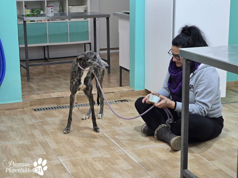 Unsere Galga Lambada wurde von der Straße gerettet - damals war sie ängstlich und konnte nur schwer Vertrauen fassen. Inzwischen macht das hübsche Mädchen immer wieder kleine Schritte auf das Team zu. Sie braucht einfach Zeit und Geduld, um ihre Schüchternheit abzulegen. Mit anderen Hunden versteht sich Lambada auf jeden Fall blendend. Gute Voraussetzungen also, falls in ihrem künftigen, liebevollen Zuhause bereits ein Hundekumpel warten sollte. Wir sind zuversichtlich, dass die Marmorkuchenmaus mit der weißen Brust bei den richtigen Menschen bald vollends den Knopf auftun wird.