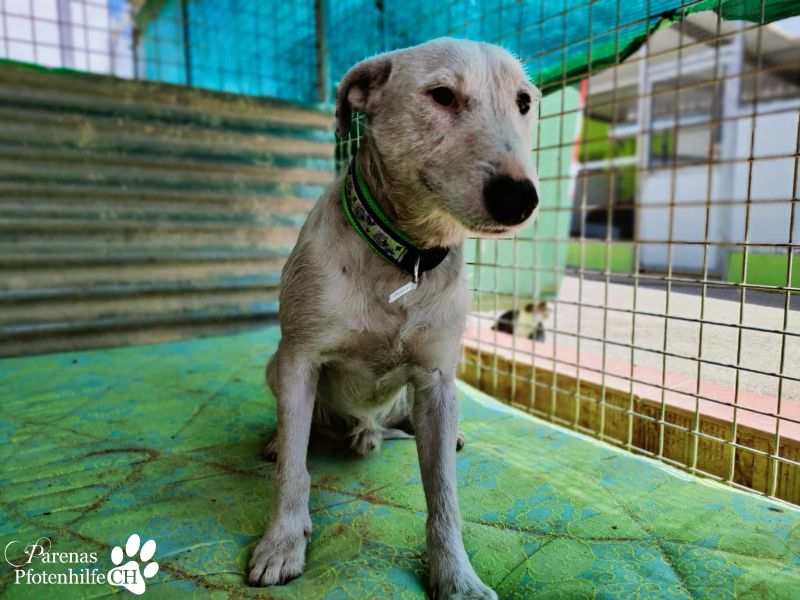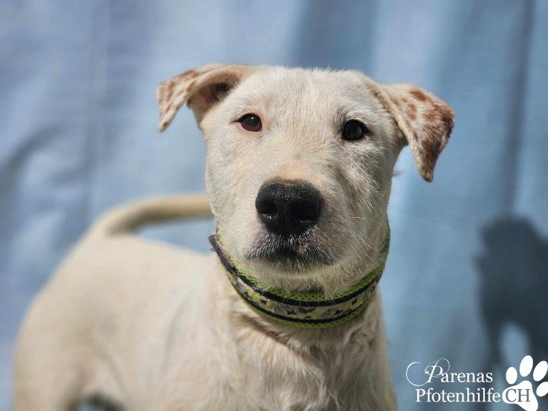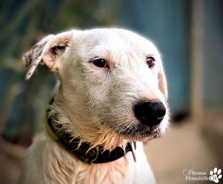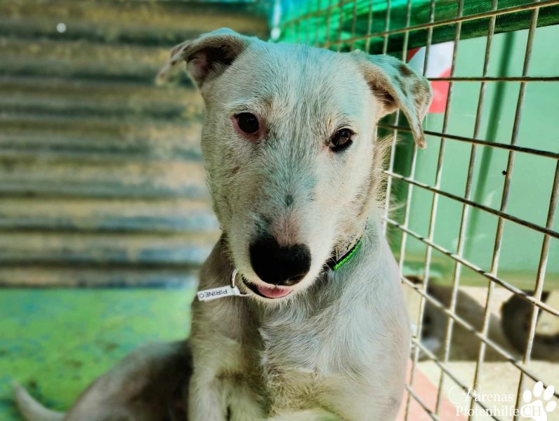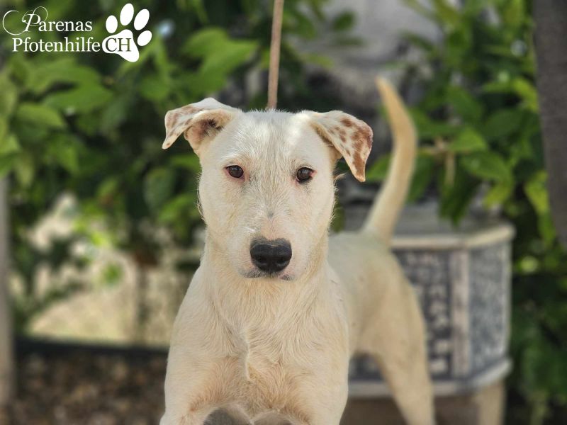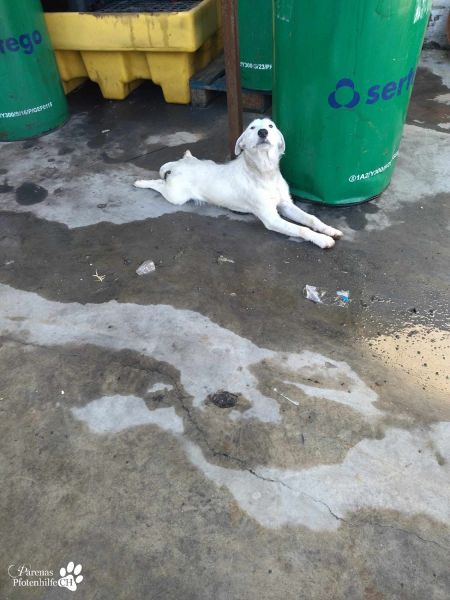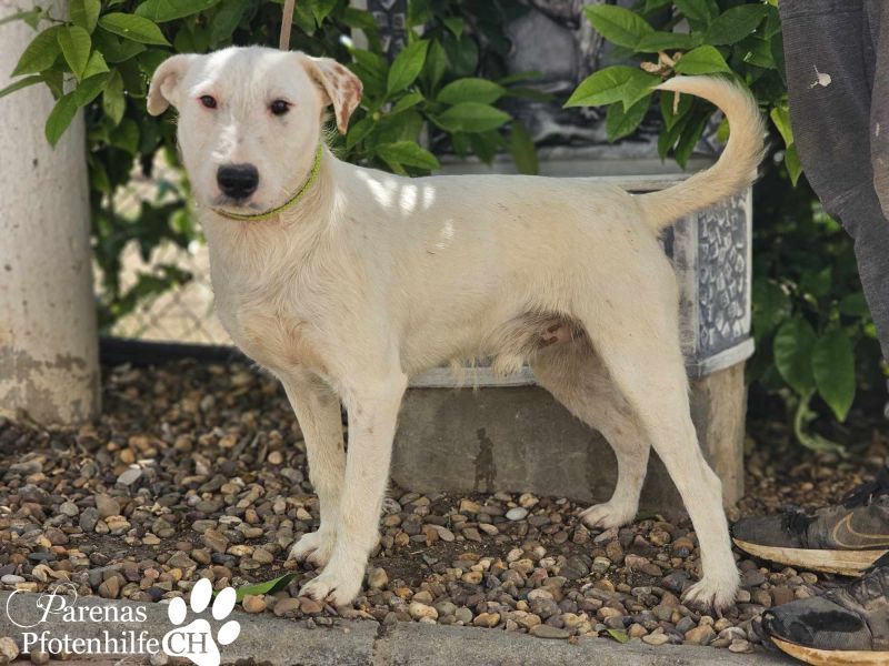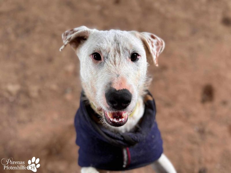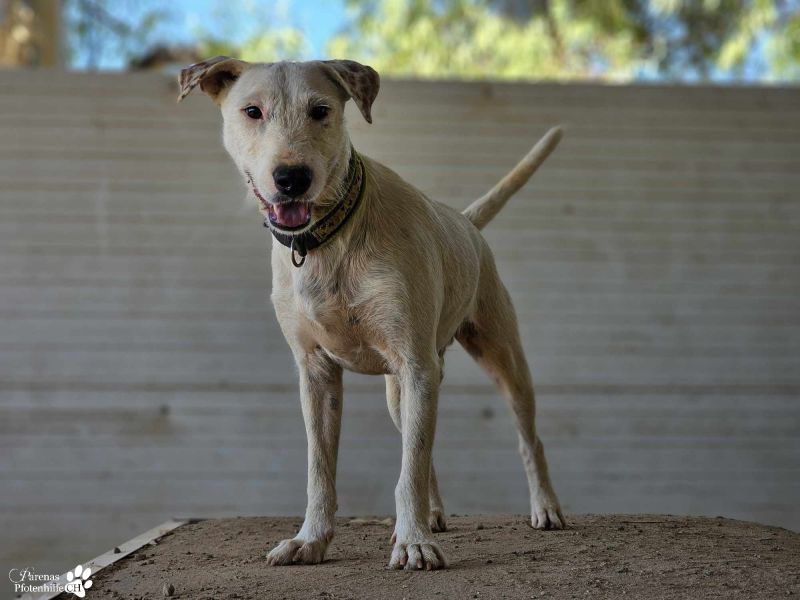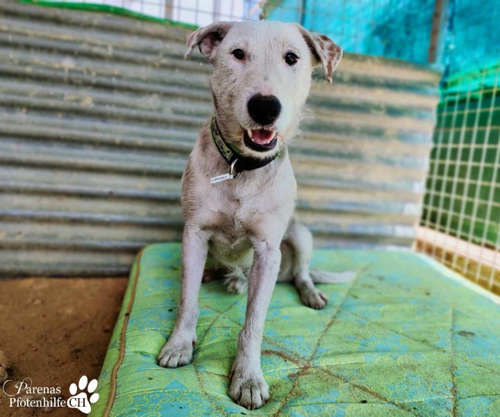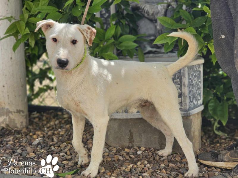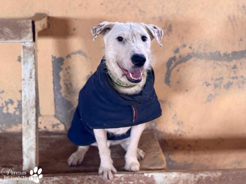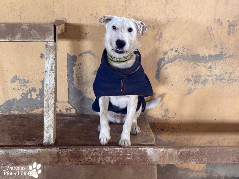 Der aufgeweckte weisse Mischling wurde auf einem Firmenparkplatz gefunden, wo etliche Mastins das Gelände bewachen. Keine gute Idee, sich dort zu verstecken. Im Refugio zeigt sich ❤️Pirineo❤️ sehr zutraulich und zeigt, dass er den Menschen liebt. Jetzt fehlt nur noch sein eigenes Körbchen, wo er die Liebe und das Glück geniessen kann. Möchtest du dem Jungspund sein Ticket in eine neue Welt schenken?