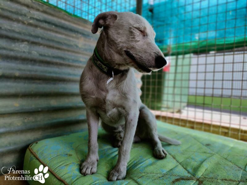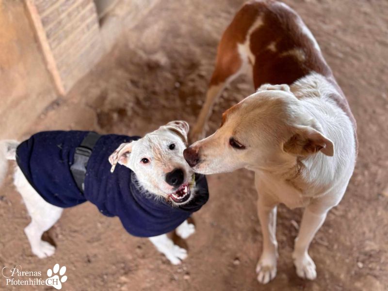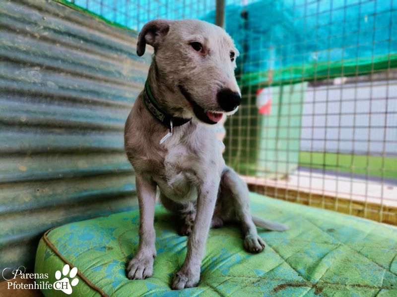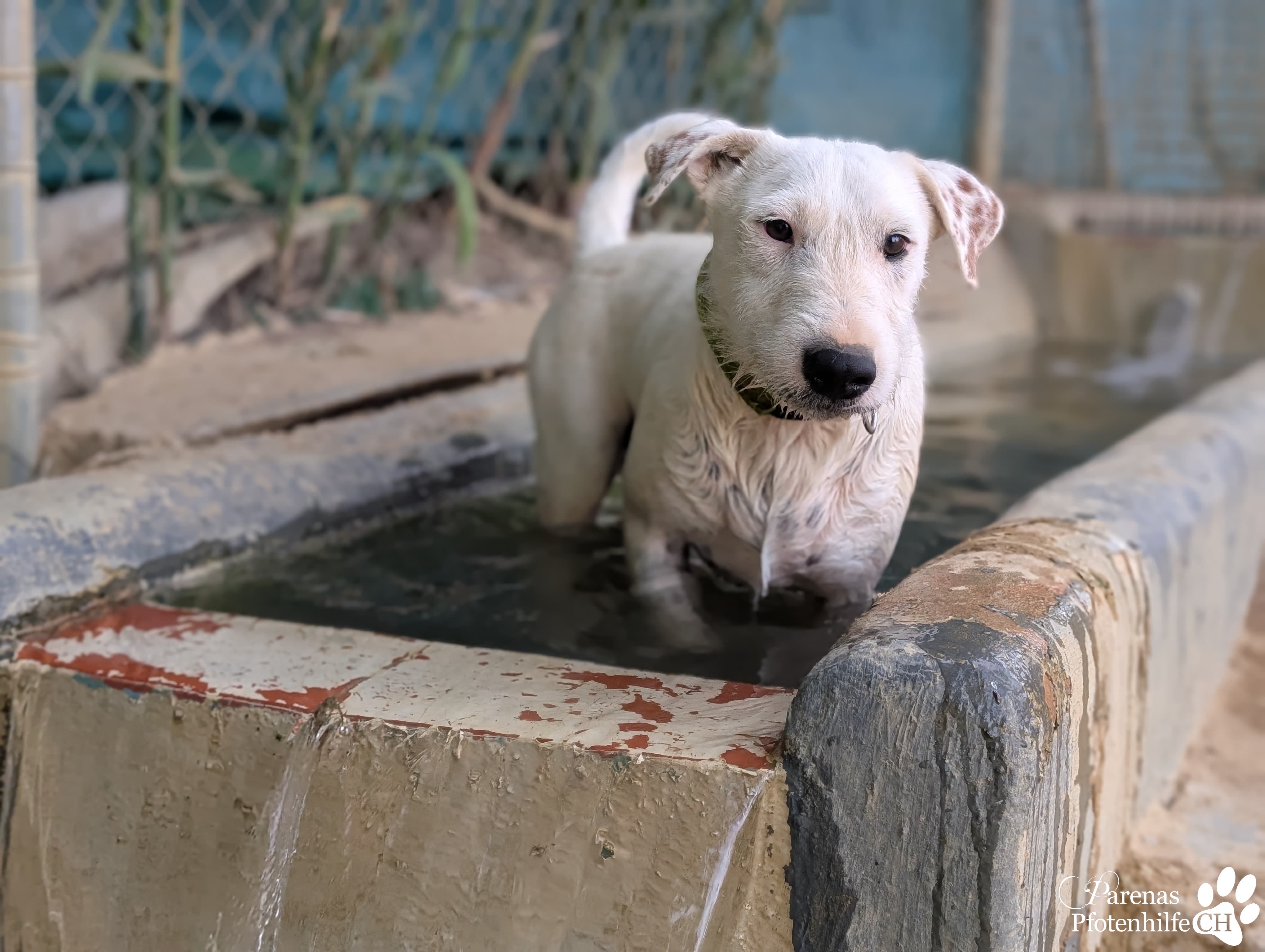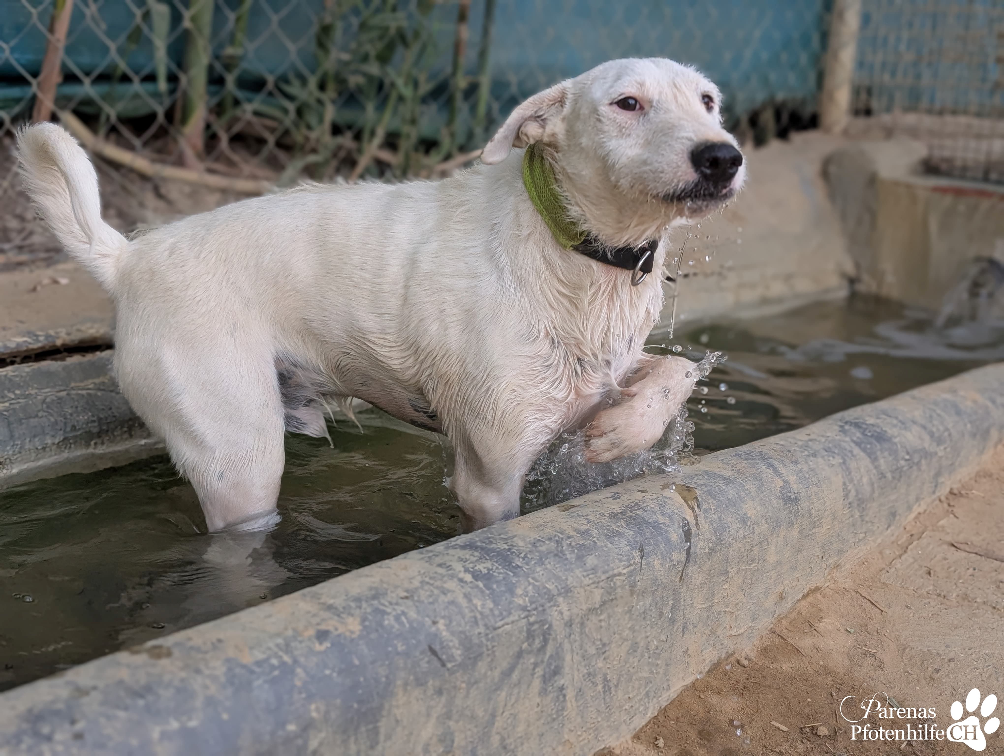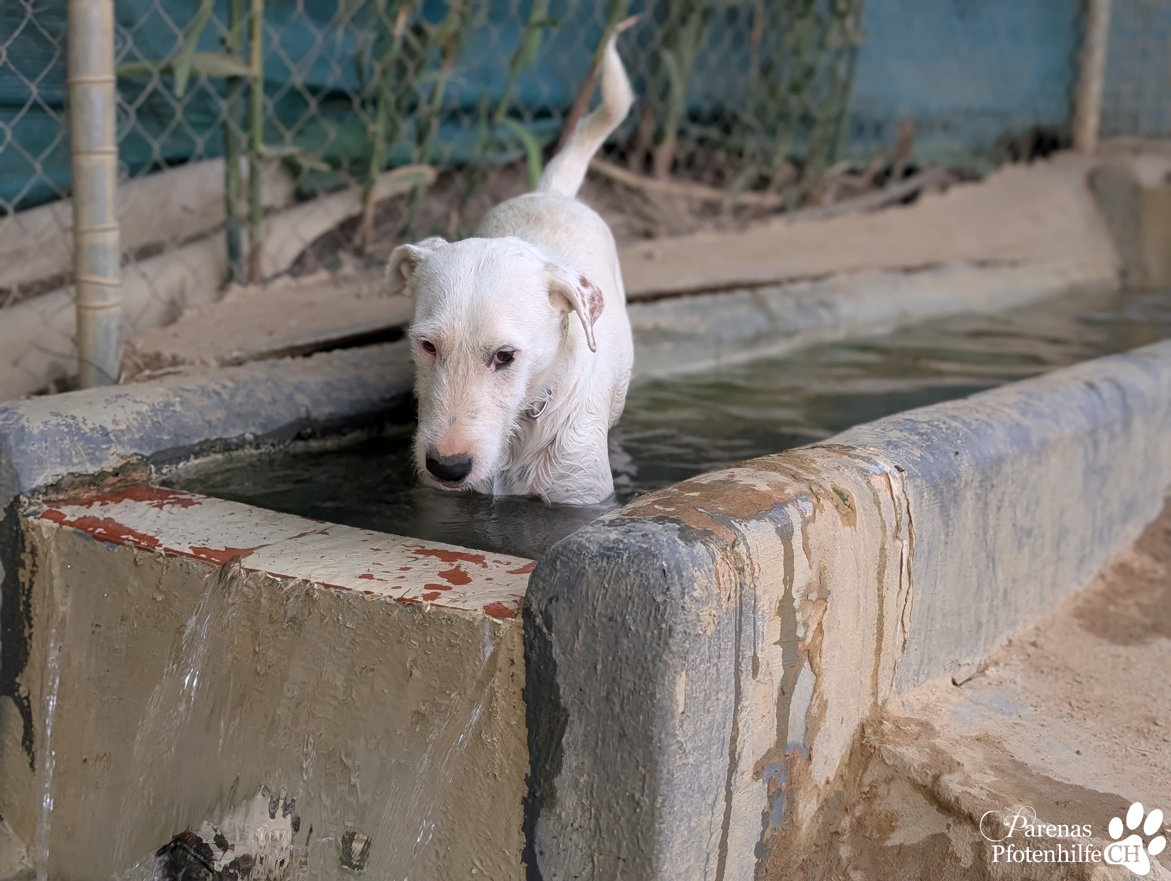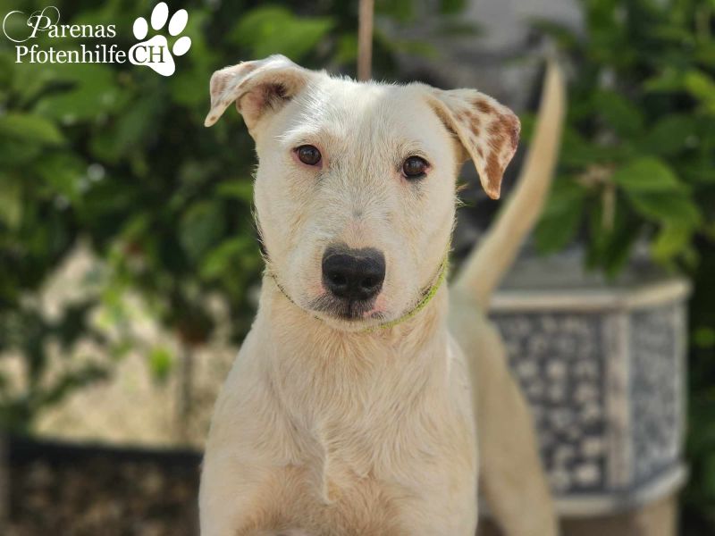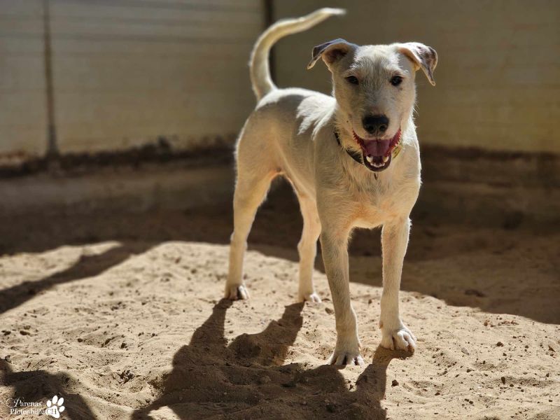 Der aufgeweckte weisse Mischling wurde auf einem Firmenparkplatz gefunden, wo etliche Mastins das Gelände bewachen. Keine gute Idee, sich dort zu verstecken. Im Refugio zeigt sich ❤️Pirineo❤️ sehr zutraulich und zeigt, dass er den Menschen liebt. Jetzt fehlt nur noch sein eigenes Körbchen, wo er die Liebe und das Glück geniessen kann. Möchtest du dem Jungspund sein Ticket in eine neue Welt schenken?