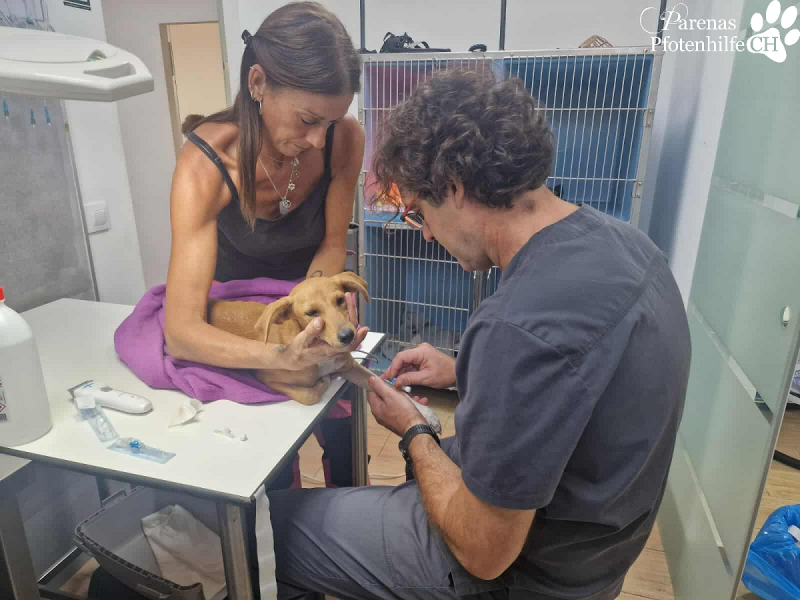Virginia brachte sie direkt zu Joaquin, um erste Untersuchungen zu machen. Leider ist die Hüfte kaputt, was unsägliche Schmerzen verursacht. Morgen wird der kleine Schatz ebenfalls Luis, unserem Traumatologen, vorgestellt, damit abgeklärt werden kann, welche Möglichkeiten es gibt, dem Engel eine beschwerdefreie Zukunft zu schenken.